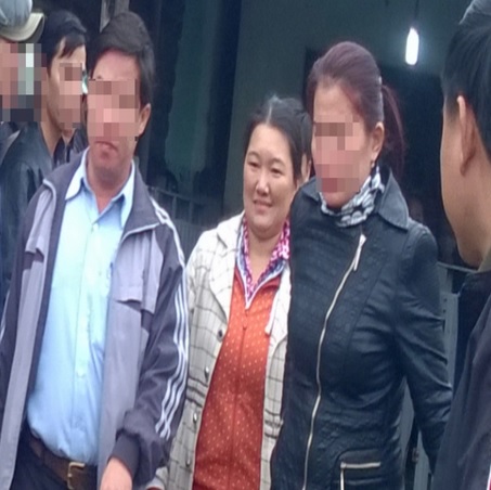 Nghi phạm Nguyễn Thị Thanh Trinh (ở giữa, áo khoác trắng kẻ) bị dẫn giải về CQĐT.