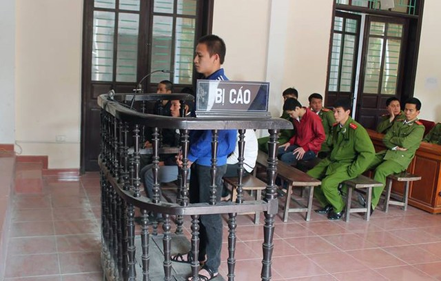 Biết tội ác của mình gây ra nên tại phiên tòa, các bị cáo chỉ co ro ngồi trong phòng xử.