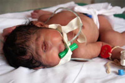 Đầu năm 2014, một em bé Indonesia chào đời với khối u khổng lồ phía bên phải khuôn mặt. Theo thời gian, khối u này lớn dần khiến đầu em sung to và phát triển thành hình trái tim.