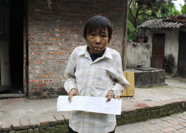 Cạnh nhà ông Sổng mấy bước chân là nhà anh Ngô Quang Doan (SN 1979). Anh Doan bị chứng tim suy thiên, vẹo cột sống từ bé nên không làm ăn được gì. Năm trước đi khám thì bác sĩ còn bảo bị thiếu máu nặng, phải truyền thêm máu nhưng do gia đình không có tiền nên đành bỏ viện về nhà sống chung với bệnh tật.