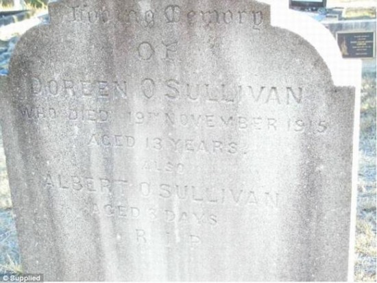 Ngôi mộ của cô bé Doreen O'Sullivan.