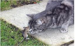 Chú chuột rất thông minh, bị con mèo bắt được nó giả vờ chết rồi chờ sơ hở là thoát thân