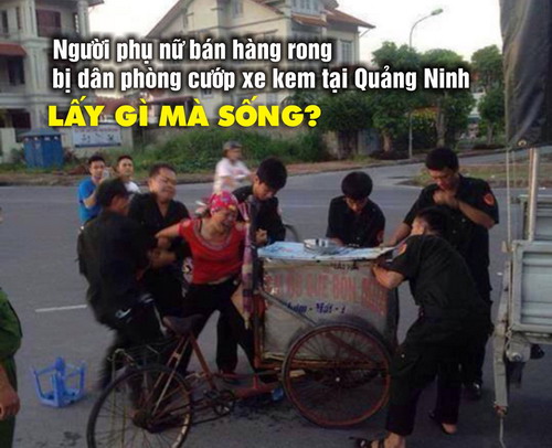Chấp hành thế nào được! Gia tài có cái xe, mấy giỏ soài, chấp hành thì xe bị cảnh sát đem đi, mấy giỏ soài sẽ mất toi. Lời hứa chờ mẹ về mẹ mua gạo thổi cơm sẽ trôi xuống lỗ chuột, mấy đứa con sẽ mất bữa ăn chiều, ngày mai lấy tiền đâu nộp phạt lấy lại cái xe đạp thổ tả nhưng vẫn nuôi được mấy đứa con. Mặc cho những lời van xin thảm thiết, hứa sẽ về nhà, không bán buôn gì nữa trong khi con ốm đau đang nằm ở nhà, một công an viên giật tay người phụ nữ này ra khỏi chiếc ghi đông xe mà bà vẫn cố ghì lấy không chịu buông ra để đưa cả người lẫn xe đi.