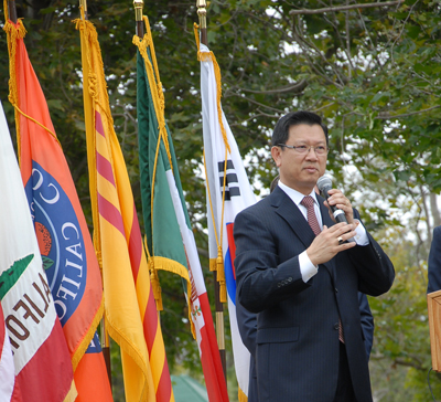 Trước đó, trong số người phát biểu vinh danh Tổng Thống Reagan, như Giám Sát Viên Michelle Steel, Orange County Địa Hạt 2; cựu Dân Biểu Chris Cox, cố vấn một thời phục vụ chính quyền Tổng Thống Reagan; Hòa Thượng Thích Chơn Thành, viện chủ chùa Liên Hoa, Garden Grove làm mọi người ngạc nhiên qua câu chuyện kể hy hữu của Ngài.