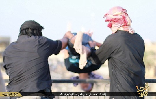 Người "đồng tính" bị IS ném xuống đất. Ảnh: Daily Mail