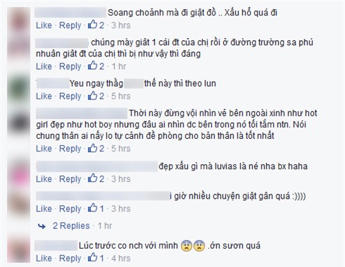 Thông tin vừa đăng tải đã thu hút rất nhiều sự quan tâm của cư dân mạng. Gần 1 nghìn lượt chia sẻ trên facebook để tìm kiếm các nạn nhân. Một số người cho biết họ khá "sốc" khi đối tượng cướp giật lại là một cô gái còn quá trẻ. Một số khác cho biết họ có quen biết với hai đối tượng và chưa bao giờ nghĩ rằng cả hai lại có những "phi vụ" cướp giật táo tợn như thế.
