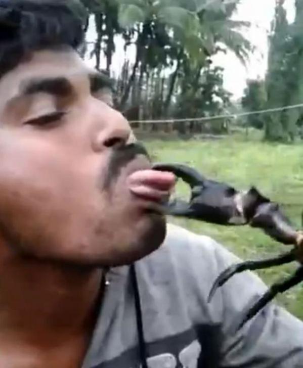 Một gã đàn ông với bộ ria mép này đã bày tỏ tình yêu thái quá của mình với một con cua có cặp càng không nhỏ chút nào! Gã đã thử một trò vô cùng mạo hiểm: cầm một con cua lớn màu đen và thử "hôn" nó. Một số sinh vật trên trái đất không sinh ra để được hôn, và những chú cua chắc chắn nằm ở đầu tiên trong danh sách đó.