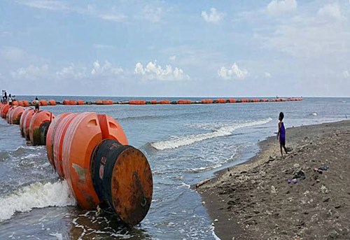 Phao nổi đánh dấu của Trung Quốc được kéo vào bờ của Philippines - Ảnh: Reuters