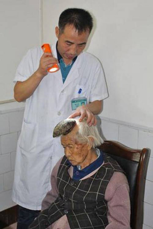 Old  Default Cụ bà người Trung Quốc mọc sừng trên đầu như "sừng kỳ lân"