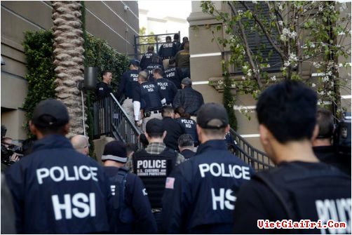 Cảnh sát ập đến một khu căn hộ trong một cuộc điều tra ngành du lịch sinh nở. Ảnh:AP
