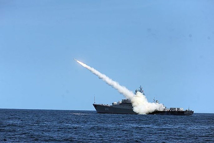 Tàu tên lửa lớp Gepard của Nga, chiếc Tatarstan phóng tên lửa Klub năm 2014 - Ảnh: Hải quân Nga