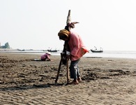 Mẹ già còng lưng mưu sinh bằng nghề cào nghêu (ảnh chụp ở vùng biển huyện Quỳnh Lưu, Nghệ An).