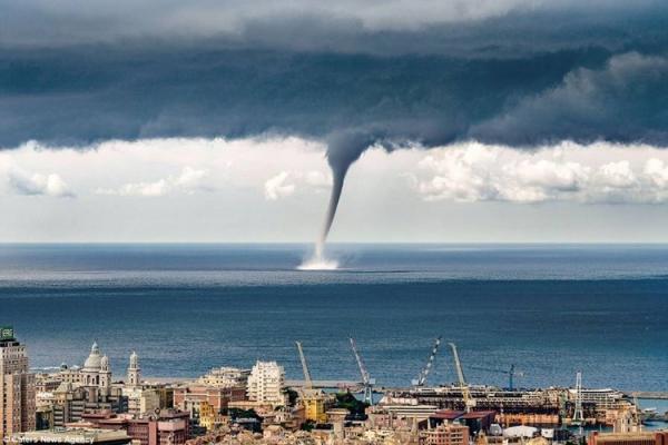 Ngày 20/10, tại bờ biển thị trấn Geona, Italia diễn ra một cảnh tượng vô cùng đáng sợ. Trên biển bất chợt xuất hiện vòi rồng khổng lồ khiến người dân địa phương khiếp đảm.