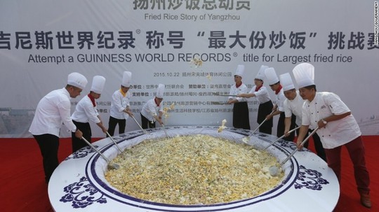 Vụ việc xảy ra tại sự kiện dĩa cơm chiên khổng lồ thiết lập kỷ lục thế giới tại TP Dương Châu, tỉnh Giang Tô hôm 22-10. Thành phố này là nơi ra đời của món cơm chiên Dương Châu nổi tiếng và 300 đầu bếp tham gia thực hiện dĩa cơm chiên nặng 4.192 kg. Sự kiện diễn ra trong khuôn khổ lễ kỷ niệm mừng TP Dương Châu 2.500 tuổi.
