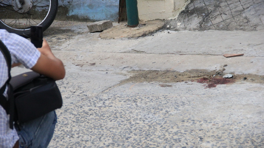 Vết máu của nạn nhân còn tại hiện trường - Ảnh: Trường Trung