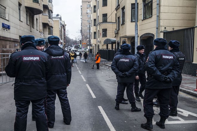 Cảnh sát Nga phong tỏa khu vực Đại sứ quán Thổ Nhĩ Kỳ ở Moskva sau khi bị người biểu t́nh Nga tấn công bằng gạch và trứng. (Nguồn mashable)