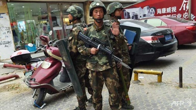 Cảnh sát Trung Quốc canh gác ở thủ phủ Urumqi, Tân Cương. Ảnh: AFP