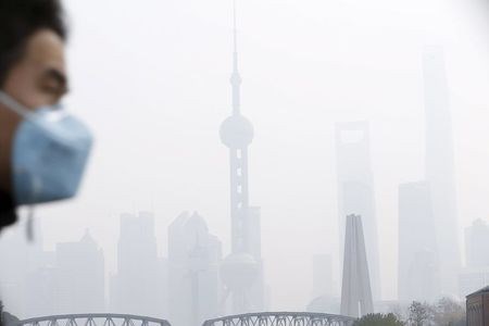 Chính quyền thành phố 20 triệu dân đã phát báo động cam, ra lệnh đóng cửa trường học, khuyến cáo trẻ em và người già ở nhà, đồng thời yêu cầu các nhà máy hạn chế hoạt động sản xuất khi sương khói mờ bao phủ khắp nơi. Nồng độ các chất gây ô nhiễm trong không khí ở Thượng Hải hiện đạt mức cao nhất trong hai năm. Ảnh: Reuters