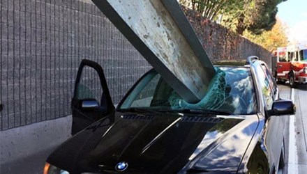 Một tai nạn khủng khiếp đã xảy ra với một tài xế chiếc X5 nếu không có trời cứu. Đó là khi anh đang lái chiếc xe này trên đường thì bất ngờ bị một thành dầm lớn xuyên thẳng qua kính chắn gió. Rất may anh chỉ bị xây xát nhẹ.