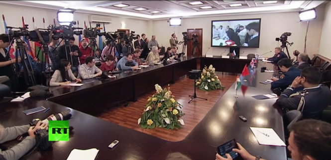 Các nhà báo theo dõi chuyên gia tháo hộp đen qua màn hình trực tiếp - Ảnh: RT