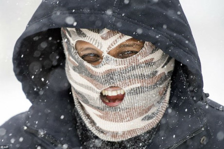 Khoảng 85 triệu người Mỹ bị ảnh hưởng bởi cơn bão. Ảnh: Người đàn ông trùm kín mặt trong lúc tuyết rơi ở Alexandria, Virginia.