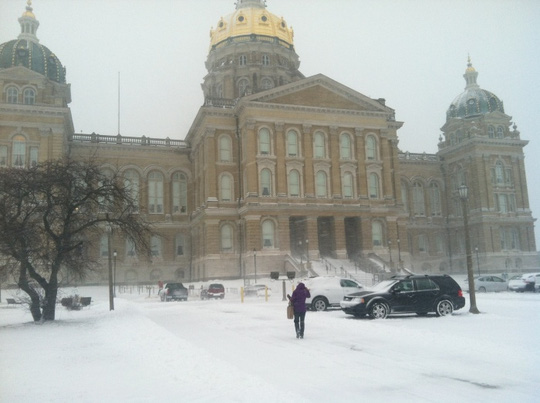 Tòa nhà Nghị viện bang Iowa mở cửa trong khi tuyết rơi dày năm 2013. Ảnh: Des Moines Register