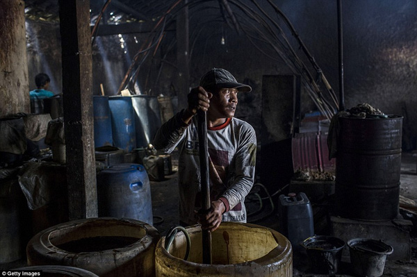 Bên trong xưởng chưng cất rượu tràn ngập bóng tối, âm u ở Indonesia, những người lao động đầy mệt mỏi khuấy mật mía nhằm cho nó lên men trong nhiều thùng nhựa để làm rượu ethanol. Người dân Indonesia đang sử dụng phương pháp truyền thống để làm CIU, một rượu được sản xuất từ ​​quá trình lên men mía, được bán hợp pháp cho các hiệu thuốc và bệnh viện.