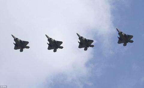 Phi đội F-22 trên bầu trời Hàn Quốc.