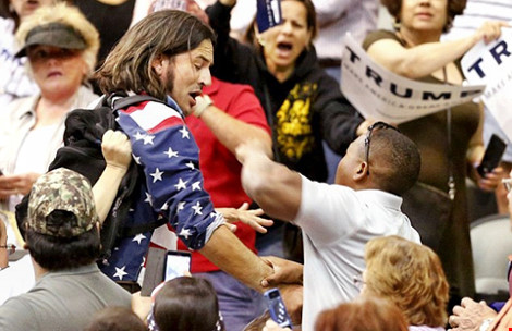 Theo đài truyền hình CNN, ẩu đả đã xảy ra giữa những người phản đối và những người ủng hộ Trump. Ông phải ngưng phát biểu nhiều lần.
