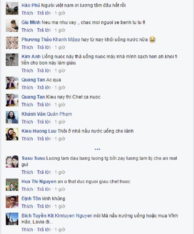 Hầu hết mọi người đều tỏ ra kinh hãi và kêu gọi tẩy chay nước uống đóng bình này.