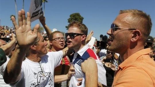 Đụng độ đã nổ ra khi một người biểu tình bị một người ủng hộ ông Trump đấm đá.