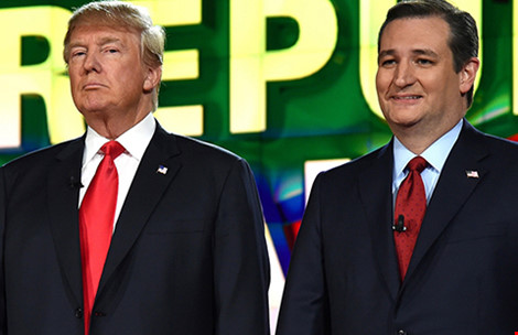 Ông Donald Trump và Ted Cruz liên tiếp công kích nhau để bảo vệ vợ ḿnh. Ảnh: REUTERS