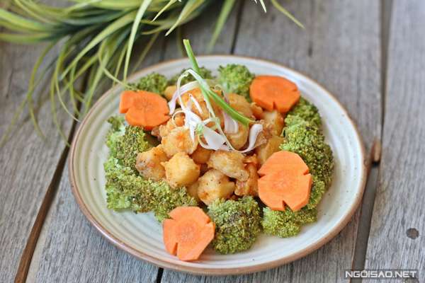 - Tiếp đến cho bông cải xanh vào đảo, nêm gia vị cho vừa ăn và tắt bếp. Cho cá ra đĩa dùng cùng cơm.