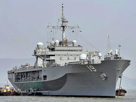 Hiện Phó Đô đốc Joseph P Aucoin ở trên tàu USS Blue Ridge, tàu đổ bộ chỉ huy của Hạm đội 7, cập cảng ở bang Goa - Ấn Độ.