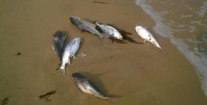 Cá thiều chết trôi dạt vào bờ biển Quảng Phúc (Quảng Trạch) chiều 26/4