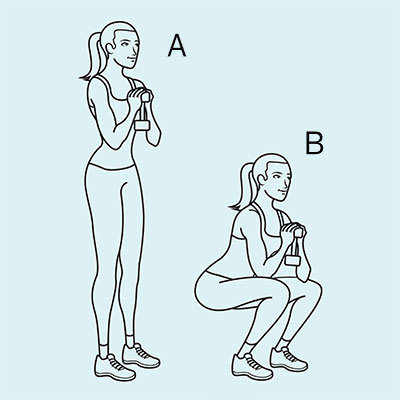 6. Squat với tạ (Goblet squat)