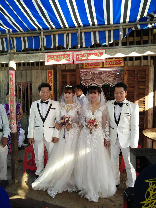 Những người đến dự đám cưới không thể phân biệt được điểm khác nhau giữa 2 cặp cô dâu chú rể.