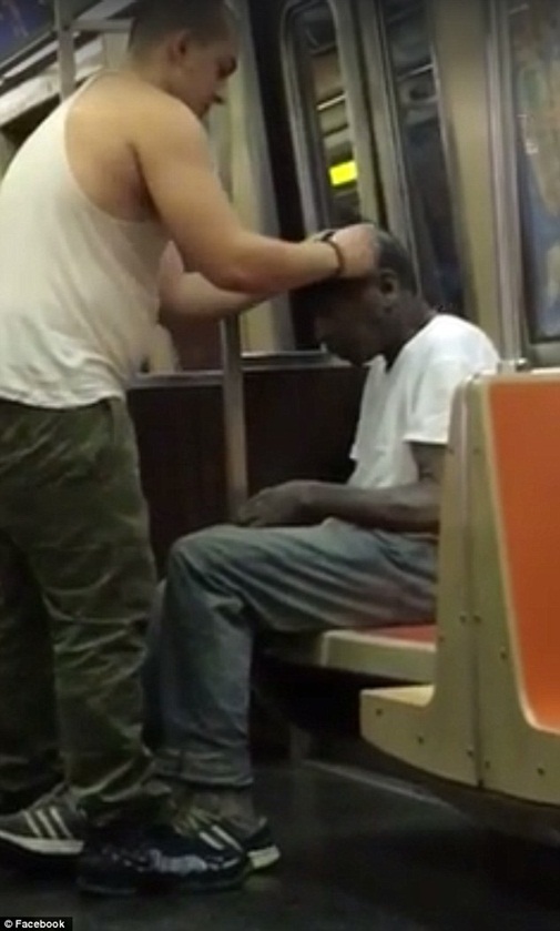 Hình ảnh một người đàn ông trẻ tuổi lấy chiếc áo sơ mi của mình đang mặc đưa cho người đàn ông da đen đang cởi trần run rẩy trên một chuyến tàu điện ngầm ở Washington Heights, NewYork, Mỹ.