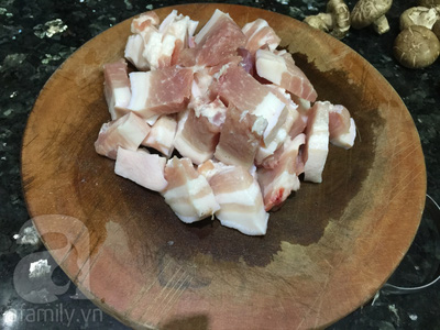 Thịt mua về rửa sạch, thái miếng dày khoảng 1,5cm.