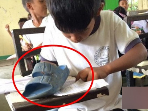 Cậu bé này đã có hành động kì quặc là để chiếc dép của mình ngay trên bàn học. Nhìn thấy cảnh này, chắc hẳn bất cứ giáo viên nào cũng cảm thấy bức xúc. Thế nhưng sau khi nghe hết câu chuyện này, không ai còn trách cậu nữa.