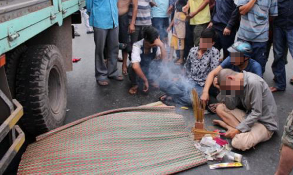 Thấy phần đùi của vợ mắc kẹt trong bánh xe anh đã hét lên và tài xế đã cho lùi xe để mọi người kéo vợ và con anh ra. Khi người ta ta lôi được chị ra bên ngoài, hai chân đã bị kẹp nát tới tận đùi, đầu bị lõm chảy máu nhưng hai tay chị vẫn ôm chặt đứa con nhỏ. Vì được mẹ ôm chặt nên khi té xuống và bị xe tải kéo lê, phần đầu của thằng bé không đập xuống đường, chỉ chân là bị xây xước nhưng chị thì đã trút hơi thở cuối cùng sau đó vài phút.