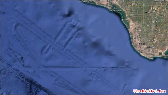 Họ nghiên cứu Google Maps để định vị "kim tự tháp hoàn hảo" kỳ lạ dưới vùng nước sâu ngoài khơi bờ biển của Mexico. Họ cho rằng đây là một UFO rộng gần 18 km, hoặc là một trại của người ngoài hành tinh dưới đáy biển.
