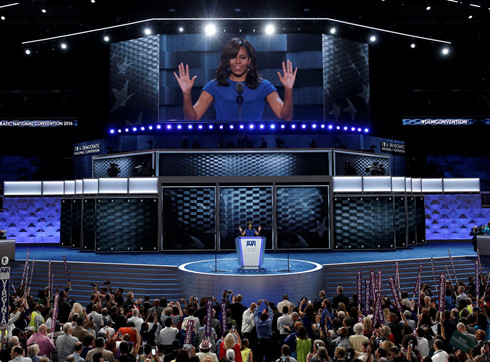 Trong đêm khai mạc Đại hội Toàn quốc đảng Dân chủ ngày 26/7, Đệ nhất Phu nhân Mỹ Michelle Obama đã có bài phát biểu bày tỏ sự ủng hộ đối với ứng viên Tổng thống đảng Dân chủ Hillary Clinton.