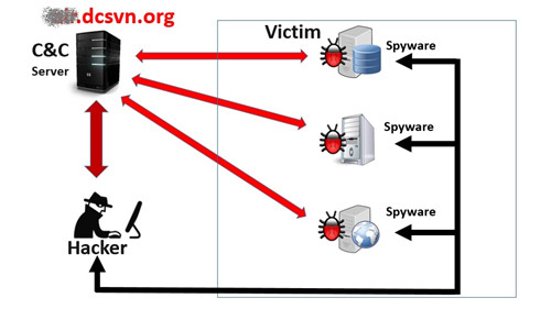Mã độc có kết nối thường xuyên, gửi các dữ liệu về máy chủ điều khiển (C&C Server) thông qua tên miền Name.dcsvn.org (nhái tên miền của website Đảng Cộng sản). Trong đó Name là tên được sinh ra theo đặc trưng của cơ quan, doanh nghiệp mà mã độc nhắm tới.
