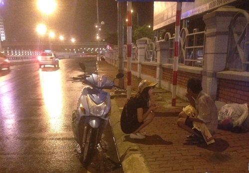 Trước đó ông đang ngôi gần chỗ mình đứng để ăn bánh mình, nhìn cụ khổ lắm, quần áo đầu óc đều bị ướt cả. Bạn nữ này đi qua thấy vậy liền quay xe lại, hỏi han ông rồi lại phóng xe đi mua cho ông cụ cái bánh mì nữa.