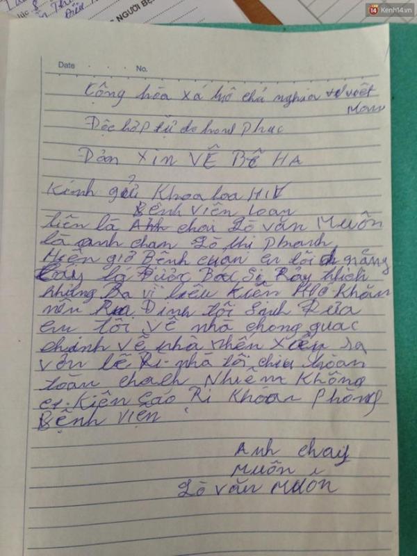 Đơn người nhà chị Phanh xin bệnh viện cho về.