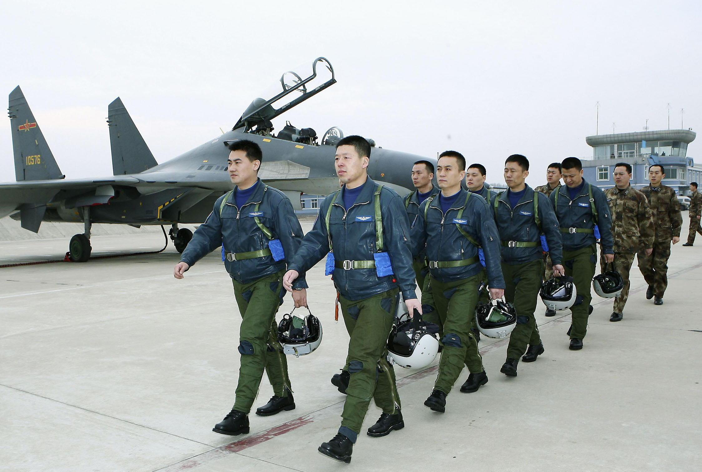 Phi công Trung Quốc chuẩn bị huấn luyện- Ảnh: Kyodo
