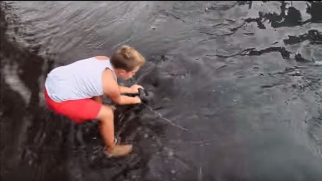 Old  Default Video: Cậu bé kỳ lạ ra biển cho cá ăn,bất ngờ là một con vật vô cùng hung dữ.