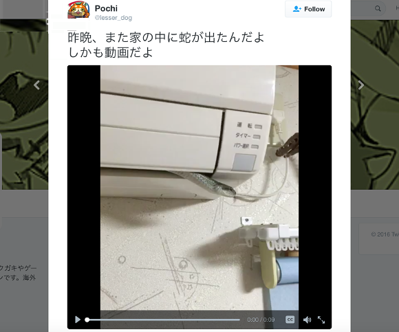 Trang Rocketnews của Nhật Bản ngày 1/10 đưa tin, một người đàn ông có tài khoản Twitter là Pochi@場面緘黙 đã đăng tải một đoạn video ghi lại cảnh tượng một con rắn không biết từ đâu lồm ngồm bò ra từ chiếc điều hòa nhiệt độ ở trong phòng.