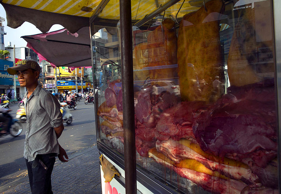 Một quán bán thịt trâu tại Sài Gòn. Thành phố này cũng như Hà Nội đều bị ô nhiễm không khí với khói xe và mùi hôi từ rác rưởi. (Paula Bronstein/ Getty Images)